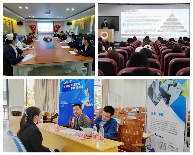 第一临床医学院、肿瘤医学院、公共卫生学院、基础医学院、外国语学院、体育与健康学院、生命科学研究院、玉林校区等在走访考察用人单位时,就校企合作、人才培养、毕业生就业推荐等方面与用人单位进行深入交流,深挖岗位增量,并积极洽谈建立实习教学基地和产学研合作事宜。