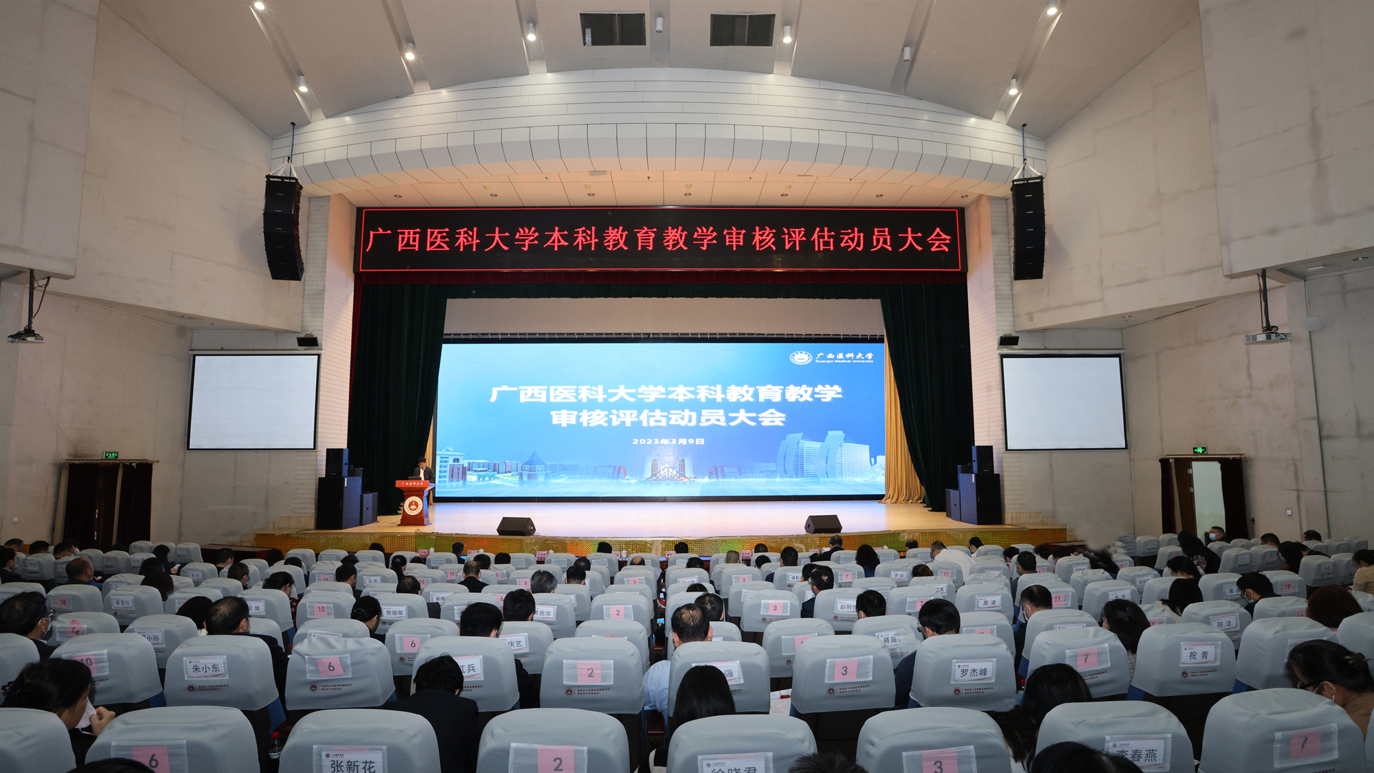 3月9日上午,我校在校本部图书馆演讲厅召开本科教育教学审核评估动员大会,校党委书记黄照权、校长曾志羽、全体在校校领导,学校第十一届教学督导员代表,全体中层干部,各二级学院教研室主任、教研科(教务部)负责人,南宁市内非直属附属医院领导、教研科科长、教研室主任代表参加会议。会议由伍伟锋副校长主持。