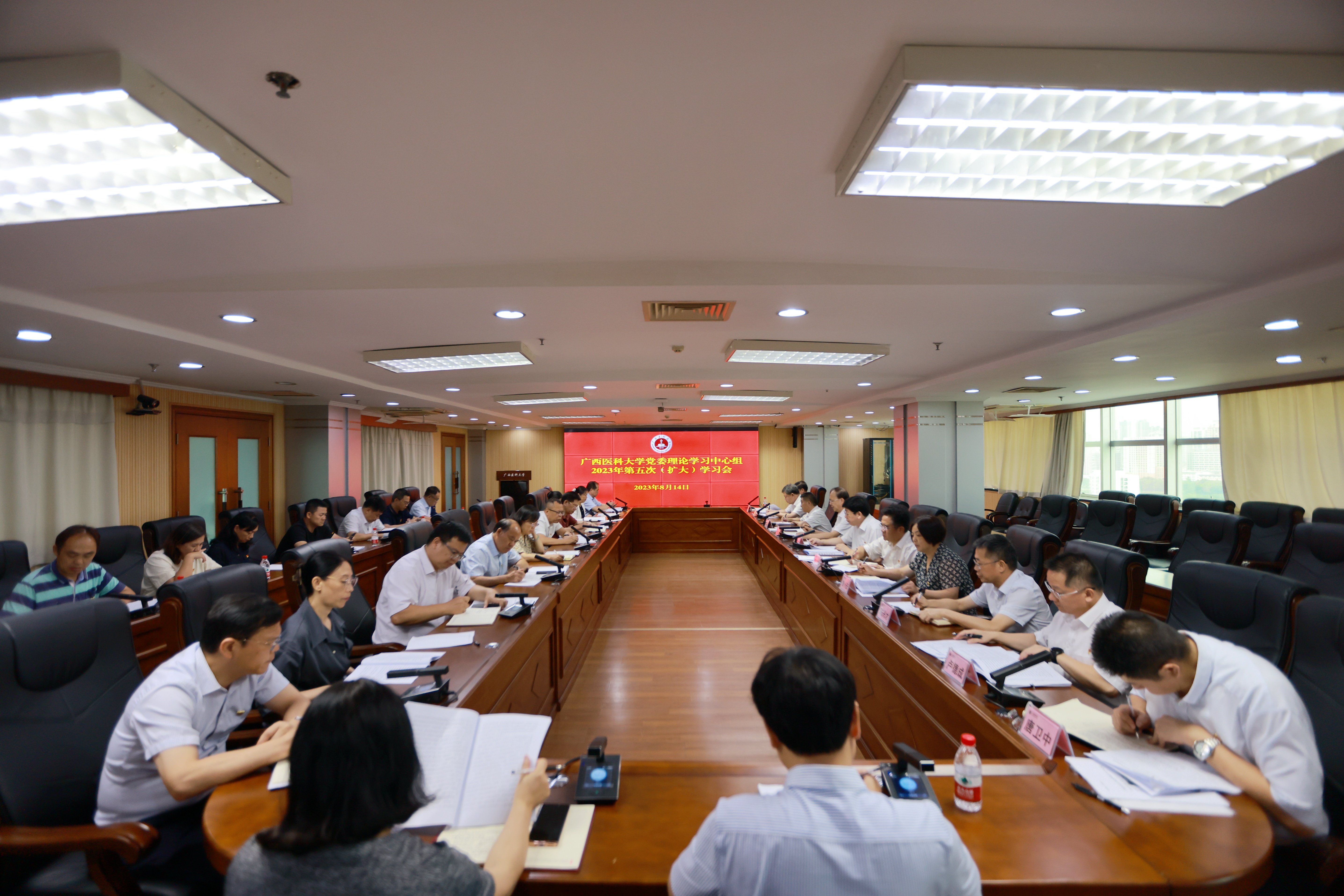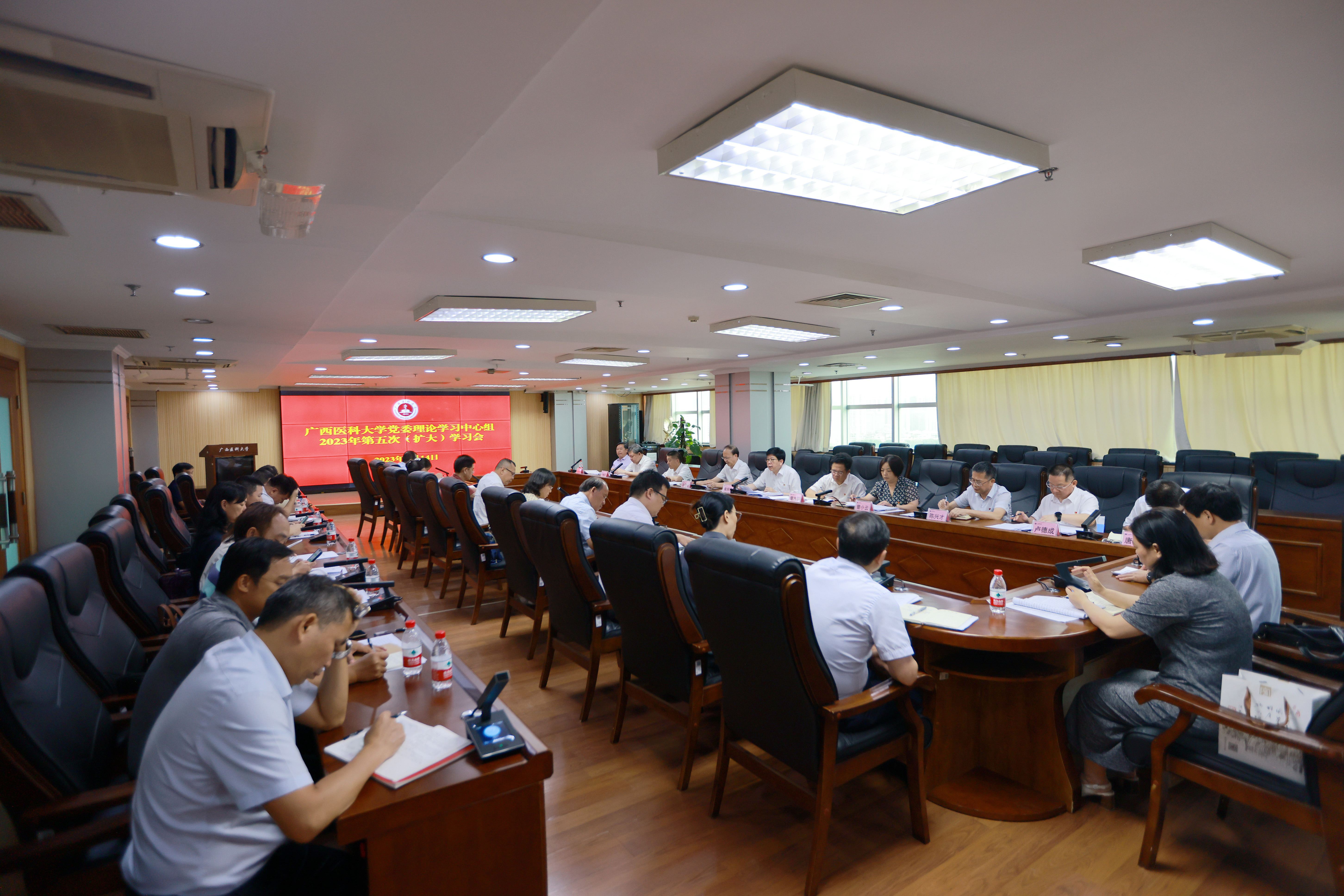 2023年8月14日上午,学校党委理论学习中心组2023年第五次(扩大)学习会在南宁-校本部综合楼14楼会议室召开,本次会议的主要任务是:认真学习领会习近平总书记关于严肃党内政治生活的重要讲话和重要指示批示精神,推进全面从严治党,营造风清气正的良好政治生态。