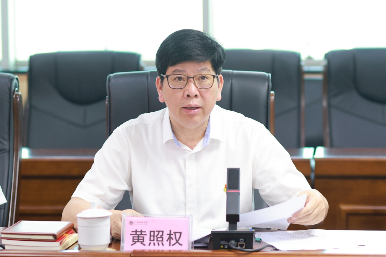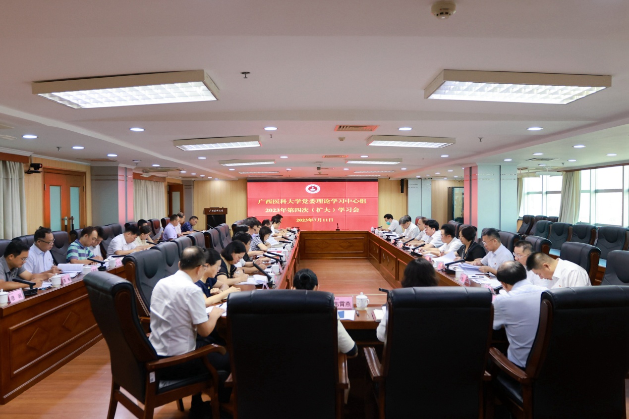 2023年7月11日上午,学校党委理论学习中心组2023年第四次(扩大)学习会在南宁-校本部综合楼14楼会议室召开,本次会议的主要任务是:坚持不懈用习近平新时代中国特色社会主义思想凝心铸魂,全面落实学校第十三次党代会精神,汇聚全面建设国内同类一流大学的磅礴力量。党委书记黄照权主持会议。